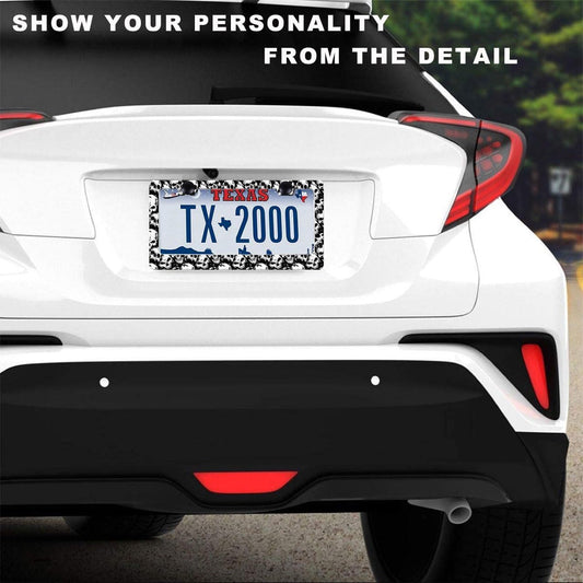 Skull License Plate Frame Black and White Skull License Plate Holder Cool Auto Accessory Car Decor Bracket Aluminum License Tag Plate with Anti-Theft Screw Caps-1Pcs