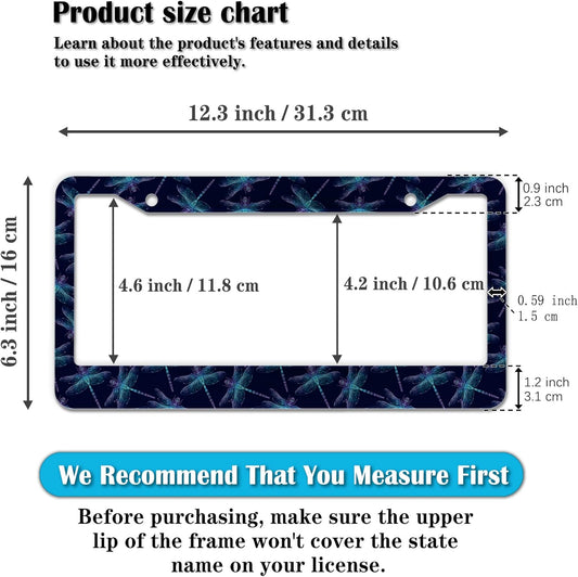 Dragonflies License Plate Frame Funny Dragonfly License Plate Frames Stainless Steel Accessories Cars Decor with 2 Holes and Screws Fits Standard Us Ca Vehicles License Plate Holder 12.2 X 6 Inch