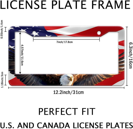 Eagle American Flag License Plate Frame, US Flag Car Tag Frame Holder Covers, Metal Aluminum Rustproof Car Accessories for Men Women 2 Holes with Screws