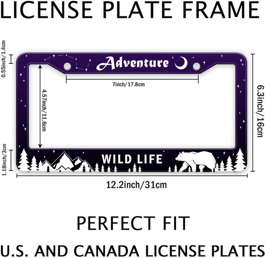 Adventure Awaist License Plate Frame, Mountains Forest Bear Tag Plate Frame Holder Cover, Metal Aluminum Rustproof Car Accessories with Screw Caps, Great Gift for Hiking Outdoor Sports Enthusiasts
