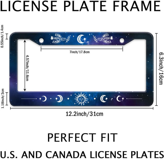 Starry Sun Moon License Plate Frame, Night Sky Moon Phase License Plate Holder Cover, Metal Aluminum Rustproof Car Accessories for Us Canada Standard Women Men 2 Holes with Screw Caps