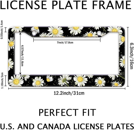 Daisy Flowers Car License Plate Frame, Flowers Print Tags Frames Holder Covers, Metal Aluminum Rustproof Car Accessories US Canada Standard with Screws for Women Men 6x12 Inch 2 Holes