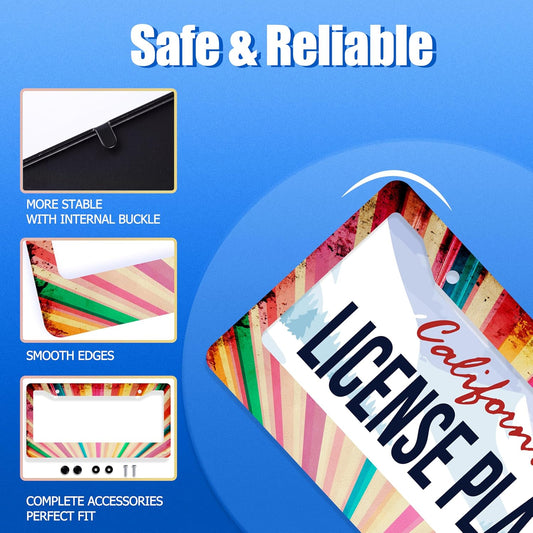 Retro Rainbow License Plate Frame Hippie Rainbow Stripes License Plate Stainless Steel Funny License Plate Holder Colorful Car Accessories Decoration With Screws Fits Standard Vehicles Size 12.3"x6.3"