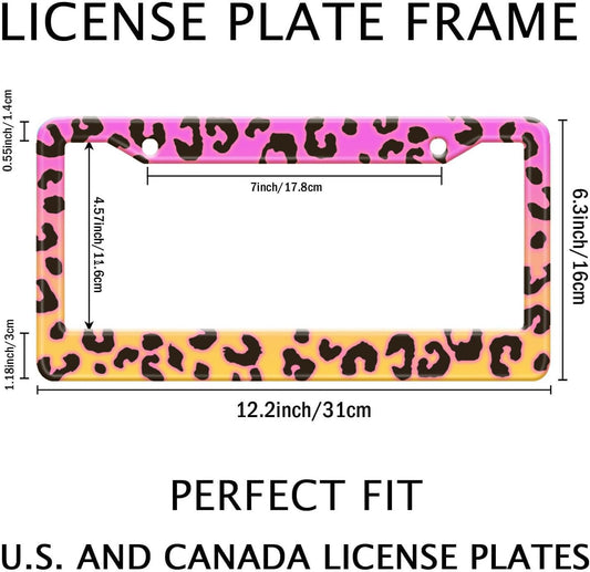 Gradient Color Leopard Print License Plate Frame Cheetah Print Tags Frames Holder Covers Metal Aluminum Rustproof Cute Car Accessories for Us Canada Standard Women Men 2 Holes with Screw Caps