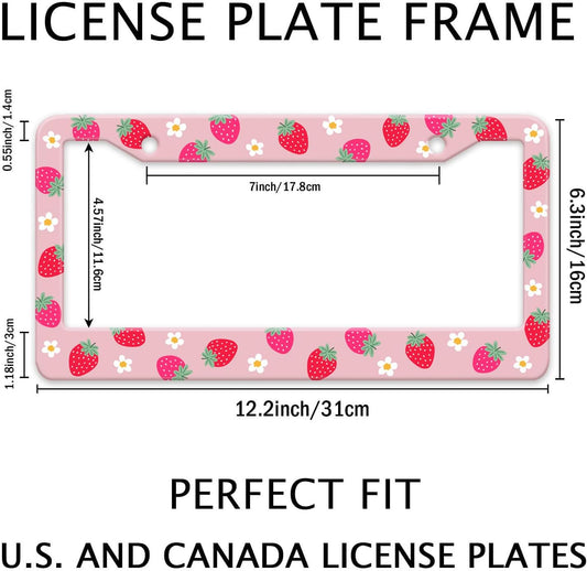 Cute Strawberry Printed License Plate Frame, Strawberry and Flowers Frames Holder Covers, Metal Aluminum Rustproof Car Accessories for Us Canada Standard Women Men 2 Holes with Screw Caps