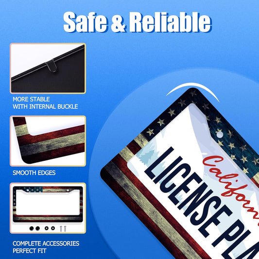 Vintage American Flag License Plate Frame, Retro USA Flag License Plate Holder Covers, Metal Aluminum Rustproof License Plate Frame Car Accessories for Women Men 2 Holes with Screw Caps