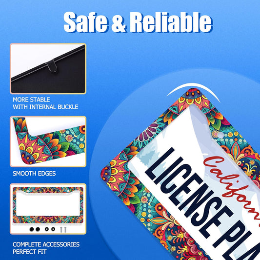 Boho License Plate Frame Beautiful Mandala Flowers License Plate Stainless Steel Funny License Plate Holder Hippie Car Accessories Decoration with 2 Screws Fits Standard Vehicles Size 12.3" x 6.3"