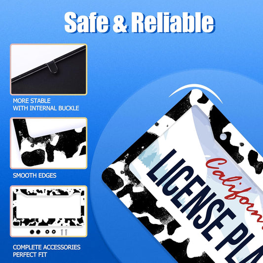 Black White Cows Texture License Plate Frame Animal Cowhide Print License Plate Stainless Steel Funny License Plate Holder Accessories Car Decoration with Screws Fits Standard Vehicles Size12.3 x6.3
