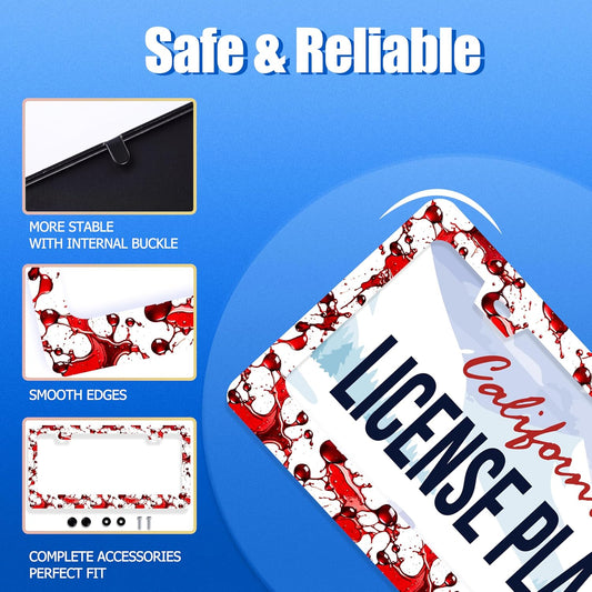 Scarry Blood Splattered License Plate Frame Halloween License Plate Stainless Steel Funny License Plate Holder Men Women Car Accessories Decoration With Screws Fits Standard Vehicles Size 12.3" x 6.3"