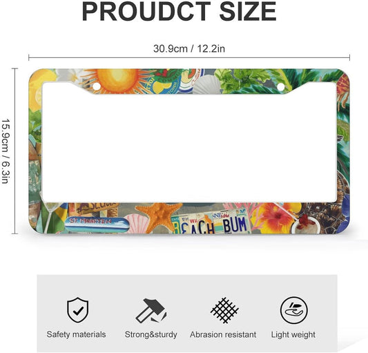 Summer Beach License Plate Frames - 2 Pcs Set 2 Holes Metal Aluminum Auto Car Accessories Decoration License Plate Frame 12.2 x 6.3 inch for Women Men Gift