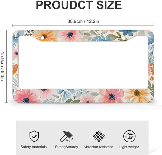 Colorful Flowers License Plate Frame Funny Floral License Plate Frames Stainless Steel Accessories Cars Decor with 2 Holes and Screws Fits Standard Us Ca Vehicles License Plate Holder 12.2 X 6 Inch