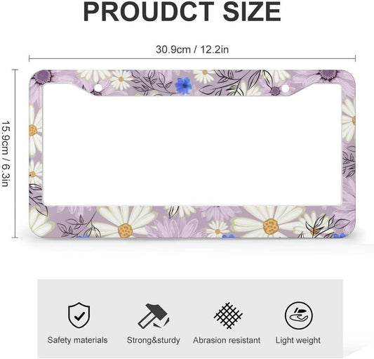 Flowers Daisy License Plate Frames - 2 Pcs Set 2 Holes Metal Aluminum Auto Car Accessories Decoration License Plate Frame 12.2 x 6.3 inch for Women Men Gift