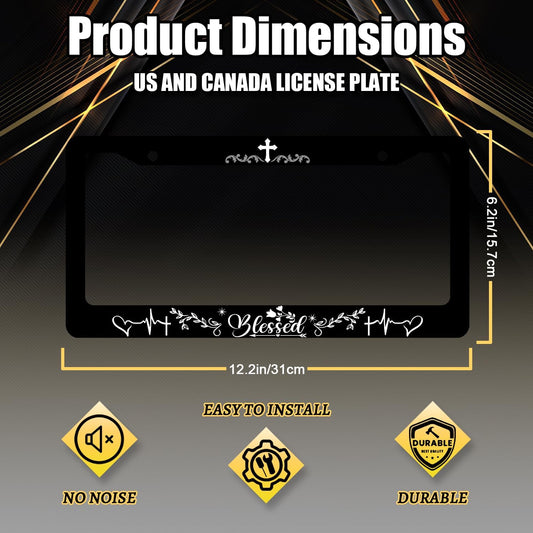 Blessed License Plate Frame Christian License Plate Stainless Steel Funny Accessories Cars Decor 12.2 X 6.2 Inch with 2 Holes and Screws Fits Standard Us Ca Vehicles
