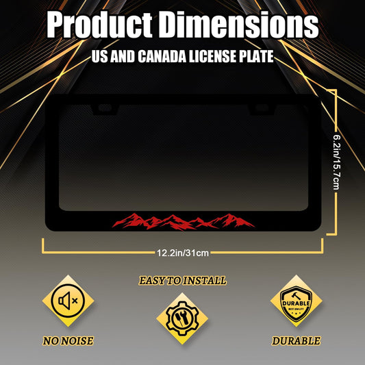 Mountain License Plate Frame Colorful Mountains License Plate Stainless Steel Funny Black Accessories Cars Decor 12.2 X 6.2 Inch with 2 Holes and Screws Fits Standard Us Ca Vehicles