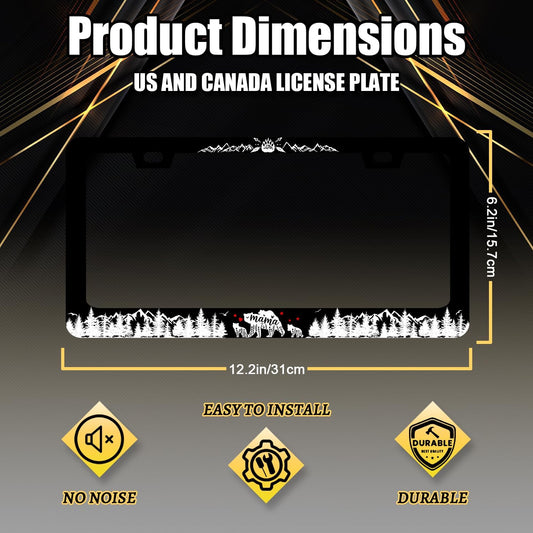 Mama Bear with Mountain License Plate Frame Forest Mountains License Plate Stainless Steel Funny Black Accessories Cars Decor 12.2 X 6.2 Inch with 2 Holes and Screws Fits Standard Us Ca Vehicles