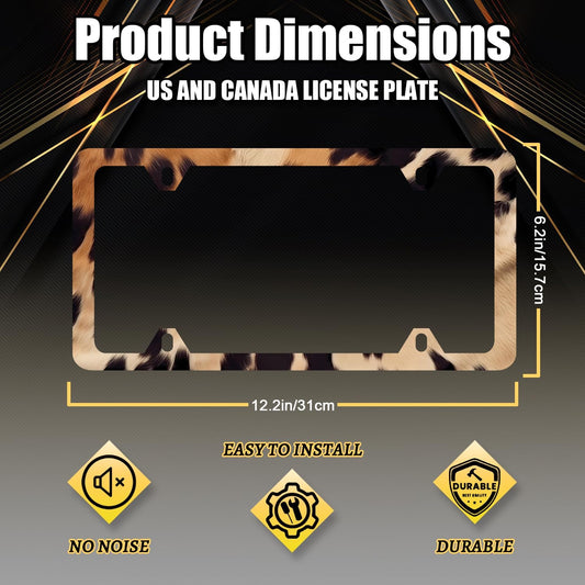 Vintage Brown White Cow Print License Plate Frame Animal Spots License Plate Stainless Steel Colorful Accessories Cars Decor 12.2 X 6.2 Inch with 4 Holes and Screws Fits Standard Us Ca Vehicles