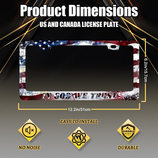 in God We Trust License Plate Frame Cross American Flag License Plate Stainless Steel Funny Accessories Cars Decor 12.2 X 6.2 Inch with 2 Holes and Screws Fits Standard Us Ca Vehicles