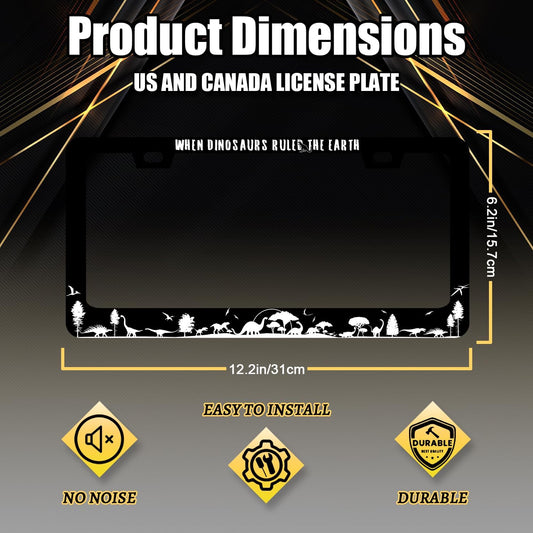 When Dinosaurs Ruled The Earth License Plate Frame Funny License Plate Stainless Steel Black Accessories Cars Decor 12.2 X 6.2 Inch with 2 Holes and Screws Fits Standard Us Ca Vehicles