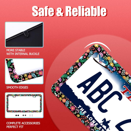 Flowers Floral License Plate Frames - 2 Pcs Set 2 Holes Metal Aluminum Auto Car Accessories Decoration License Plate Frame 12.2 x 6.3 inch for Women Men Gift