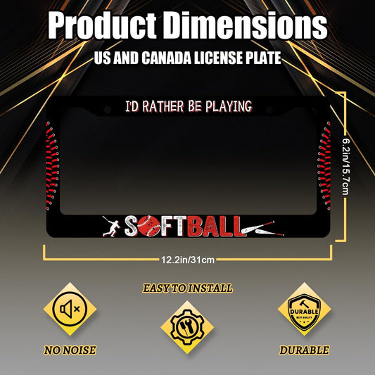 I'd Rather Be Playing Softball License Plate Frame Balls License Plate Stainless Steel Funny Black Accessories Cars Decor 12.2 X 6.2 Inch with 2 Holes and Screws Fits Standard Us Ca Vehicles