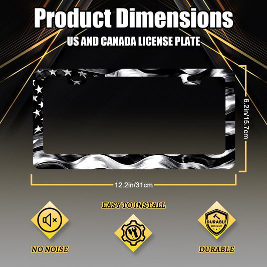 Black White American Flag License Plate Frame Patriotic USA Flag License Plate Stainless Steel Funny Black Accessories Cars Decor 12.2 X 6.2 Inch with 2 Holes and Screws Fits Standard Us Ca Vehicles