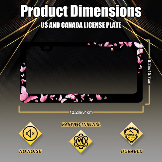 Butterfly License Plate Frame Pink Butterflies License Plate Stainless Steel Funny Accessories Cars Decor 12.2 X 6.2 Inch with 2 Holes and Screws Fits Standard Us Ca Vehicles