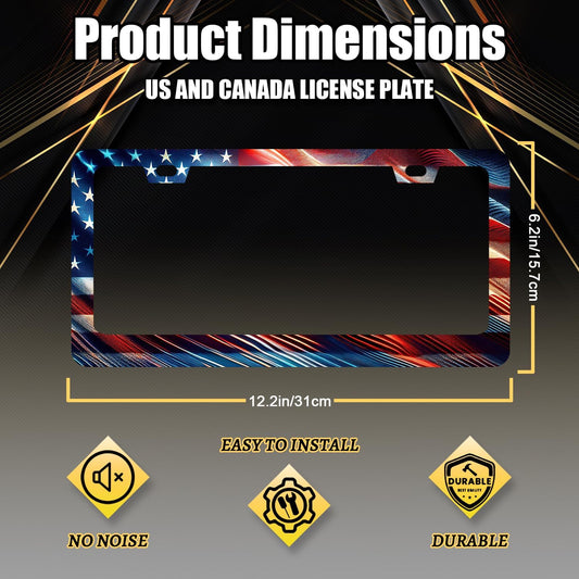 American Flag License Plate Frames - 2 Pcs Set 2 Holes Metal Aluminum Auto Car Accessories Decoration License Plate Frame 12.2 x 6.3 inch for Women Men Gift