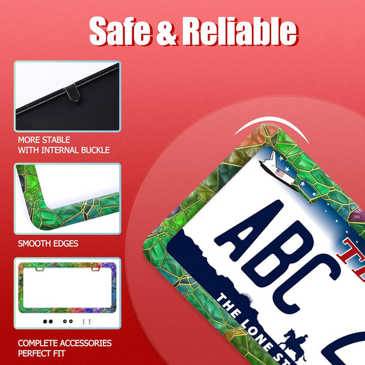Colored Gemstone Patterns License Plate Frame Funny License Plate Frames Stainless Steel Accessories Cars Decor with 2 Holes and Screws Fits Standard Us Ca Vehicles License Plate Holder 12.2 X 6 Inch