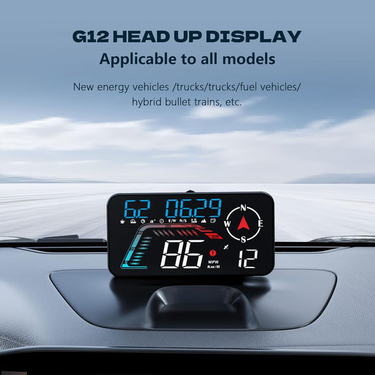 Hud Car Head Up Display G12 with HD LED Display for All Speedometer for All Speedometer Models, with Adaptive Light Sensing