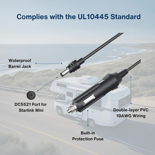 Starlink Mini Power Cable 10FT/3M Cigarette Lighter Adapter, Car Charger 12V-24V DC Power Cord for Starlink Mini, Direct to Cigarette Lighter, DC Male to Lighter Plug for Vehicle Use