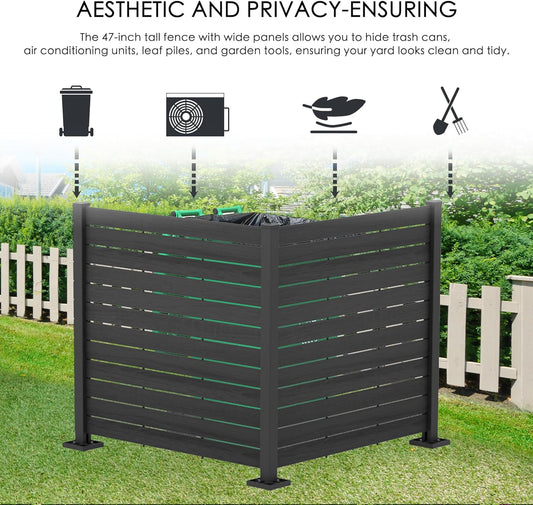 Kozyard 50" W x 48" H Outdoor Privacy Screens Aluminum Post, Air Conditioner Fence Panels, Pool Equipment Enclosure, Trash Can Screens Fence Kit for Outside Backyard Patio (Black/4Panels)