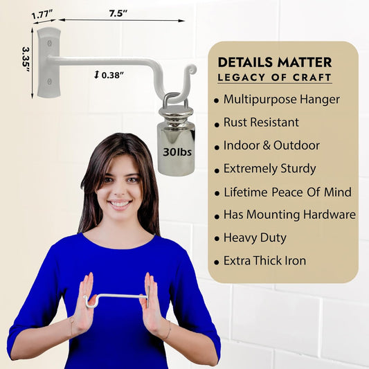 RTZEN Plant Hangers Outdoor or Indoor - Wrought Iron Metal Hanger Indoor Hook - Heavy Duty Wall Bracket Hooks for Hanging Plants Baskets Lanterns Wind Chimes - 2 Pack (White Shepherds Hooks)