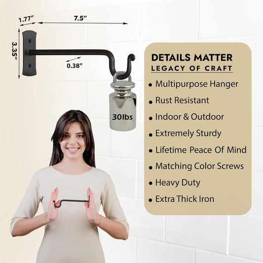 RTZEN Plant Hangers Outdoor or Indoor - Wrought Iron Metal Hanger Indoor Hook - Heavy Duty Wall Bracket Hooks for Hanging Plants Baskets Lanterns Wind Chimes - 2 Pack (Black Axe-Shape Hooks)