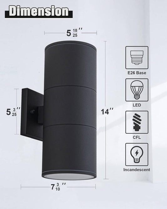 Ken & Ricky 14Inch Exterior Lighting Fixtures,Outdoor Cylinder Wall Lights,Black Outdoor Sconces Set of 2, Outside Light Fixtures for House,Front Door,Entrance, Garage,Porch-2pk