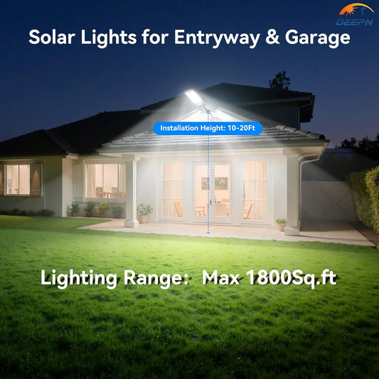 Solar Lights Outdoor for Outside, IP66 Waterproof Street Lights Outdoor, 6500K Dusk to Dawn LED Solar Security Flood Lights Motion Sensor with Remote Control for Yard, Entryway Garage, Porch