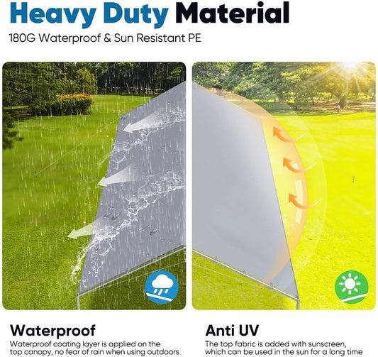 SUNBURY Carport, 10x20 FT Heavy Duty Canopy, Portable Garage with All-Steel Metal Frame & Double Zipper Doors, Round Style Outdoor Storage Shed for Car, Truck, Boat, Patio Furniture, Grey