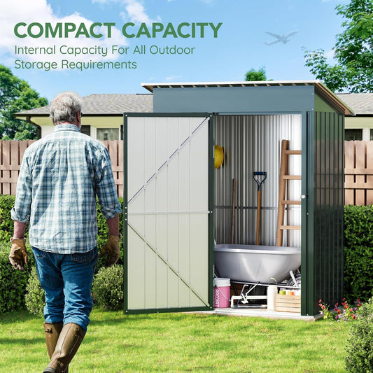 5x3X6.3FT Outdoor Steel Storage Shed with Lockable Doors and Frame Floor, Compact Small Bike Shed, Ideal for Garden, Backyard, Swimming Pool, Patio Utility and Tool Storage