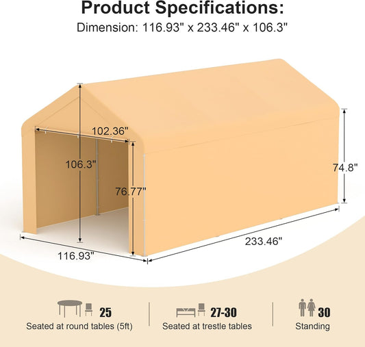 Morngardo Carport 10'x20' Heavy Duty Car Canopy Portable Garage with Removable Sidewalls & Doors for Truck Boat Car Port, Party, Storage (Yellow)