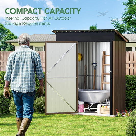 5X3FT Outdoor Steel Storage Shed with Lockable Doors, One Window,Ideal for Garden, Backyard, Patio Storage,Brown