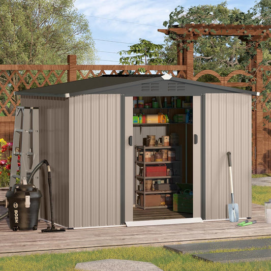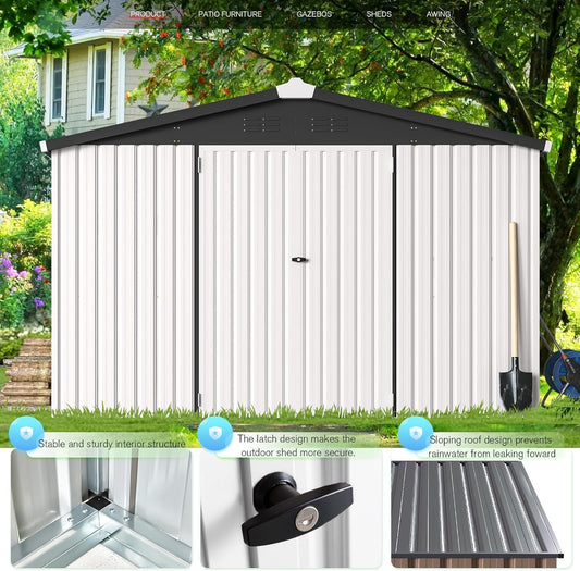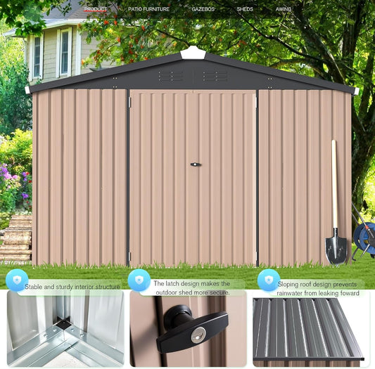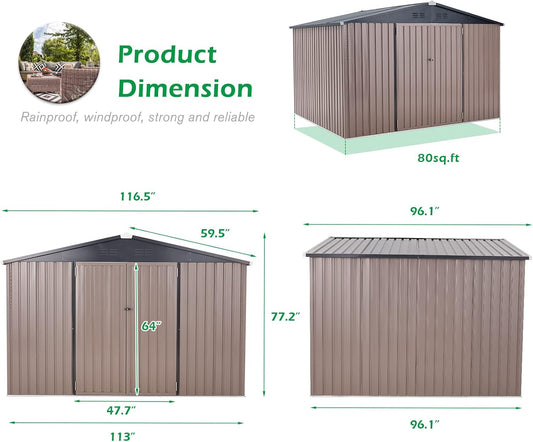 AECOJOY Shed 8' x 10' Outdoor Storage Metal Shed, Steel Yard Shed with Design of Lockable Doors, Utility and Tool Storage for Garden, Backyard, Patio, Outside use