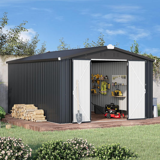 AECOJOY Shed 10' x 14' Storage Shed, Outdoor Storage Sheds & Outdoor Storage 10' x 14' with Lockable Doors, Large Steel Yard Shed, Utility and Tool Storage for Garden, Patio, Outside use in Dark Grey