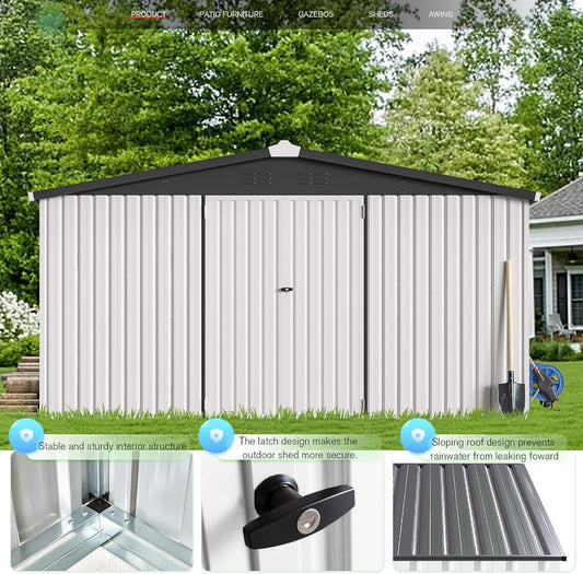 AECOJOY 10'x10' Outdoor Storage Shed, Large Metal Sheds & Outdoor Storage Clearance Steel Yard Shed with Lockable Doors, Utility and Tool Storage Garden Sheds for Barkyard, Patio and Outside Use