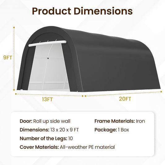 Kiss the Water Carport, Round Portable Garage, Steel Heavy Duty Carport with Ground Stakes, Tensioner and 2 Roll Up Windows PE Fabric Car Port, Tent for Storage, Storage Shed, Garage, SUV (13x20 Ft)