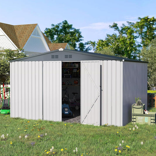 AECOJOY Shed 12' x 10' Storage Shed Large, Sheds & Outdoor Storage Clearance 10x12 Sheds with Lockable Doors, Utility and Tool Storage Shed for Garden, Backyard, Patio, Outside use in White