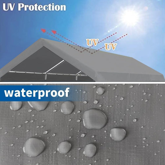 Rutile 10 x 20 FT Carport Replacement Cover - Heavy Duty Car Tarp Canopy Tent Garage Top Shelter With Fabric Leg Pole Skirts and Ball Bungees - Gray (Only Top Cover, Frame Not Included)