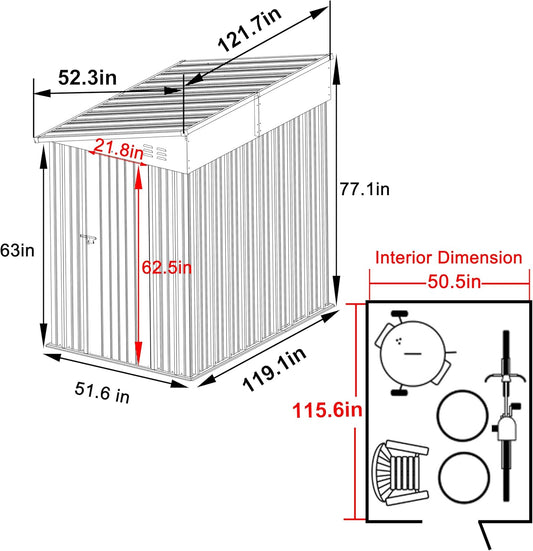 Shed Lean to Storage Shed, Outdoor 4' x 8' Metal Wall Side Storage Sheds & Outdoor Storage, Garden Storage Cabinet for Backayrd, Patio and Outdoor Use,Grey