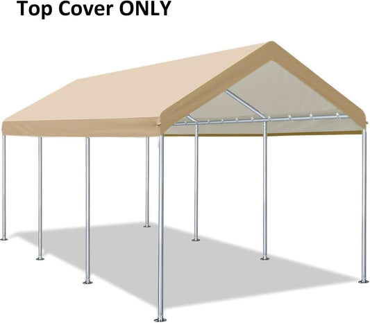 Carport Replacement Canopy Cover for Car Tent Top Garage Shelter Cover Tarp with Ball Bungees (Only Top Cover, Frame Not Include) (Beige 10’ x 20‘)