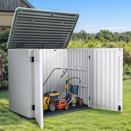 GOOBED 4.5x4ft Outdoor Horizontal Resin Storage Shed, 47 cuft Large Waterproof Tool Shed, No Shelf Included, Lockable, Easy Assembly (Light Gray)