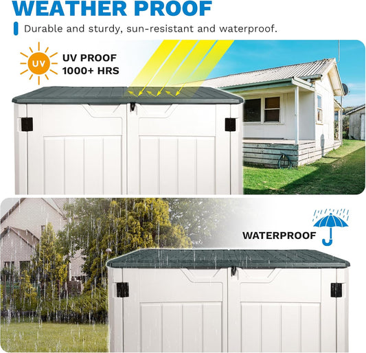 YITAHOME 36 cu ft Resin Outdoor Storage Shed, Weather-Resistant Horizontal Tool Shed, Waterproof Outdoor Storage with Lockable Doors & Air Vent for Trash Cans, Garden Tools (Light Gray)