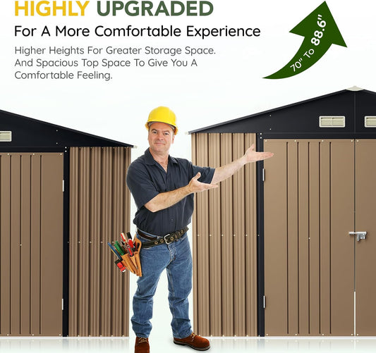 Breezz 8X10FT Outdoor Steel Storage Shed with Clear Window, Lockable Doors, Weather-Resistant Metal Tool Shed for Garden, Backyard, Patio, and Utility Storage.Brown